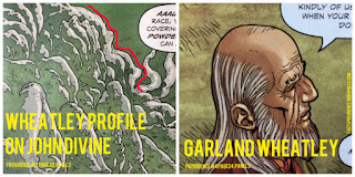 - Quarto quadro: A senhora à porta deve ser Annie Gamwell, tia de HPL e herdeira de sua obra. À frente temos August Derleth e Donald Wandrei, de quem já falamos. Quanto a esse papo entre eles dois... bem, isso é uma longa história que tentarei resumir aqui. Derleth e Wandrei, apesar das boas intenções em ver a obra de HPL publicada, conseguiram garantir o controle efetivo sobre os direitos de publicação com uma mescla de acordos/intimidações com/sobre a Sra. Gamwell, passando por cima da disposição formal do próprio HPL em relação a Barlow ser seu legítimo executor literário. A atitude agressiva de Derleth para controlar o material de HPL bem como em relação a Barlow fez com que sua reputação entre os estudiosos da "vida e obra de HPL" fosse pro vinagre, a despeito de suas valorosas contribuições para os Mitos Lovecraftianos. Quanto ao "Espere até eu falar com Smith!" refere-se a como Derleth detonou Barlow para Clark Ashton Smith, fazendo com que Smith cortasse relações com Barlow em definitivo.